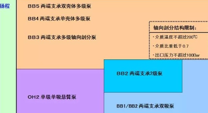 (5) 介質(zhì)溫度:介質(zhì)溫度超過(guò)200 ℃,選用徑向剖分式泵,泵腳中心線支撐。則可選擇的泵型為OH2型或BB2型泵(公眾號(hào):泵管家)。