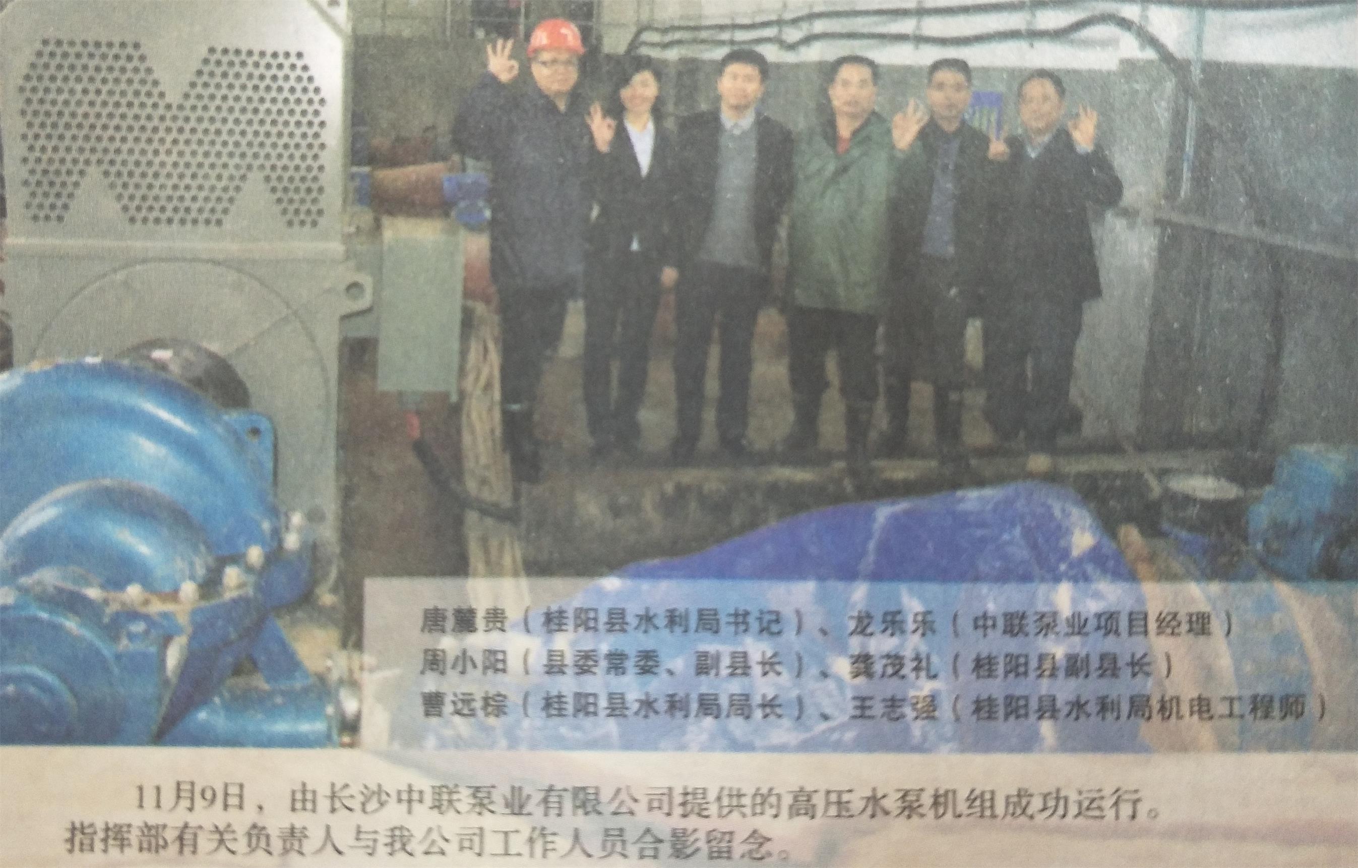 該工程從10月23日起開工建設,當時使用了2臺中開泵和2臺真空泵,僅用了18天,11月10日13時26分,桂陽縣西水河應急引水工程全面實現提水,就完成了2個泵房,5個標段5400米水管的建設工作,成功實現了 “上水”,日供水量達3-4萬立方米,緩解了縣城25萬人生活用水緊張形勢。
