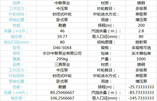 長沙中聯泵業CCTV報道品牌值得信賴,下面D46-50x4 多級離心泵 揚程200米水泵 CCTV報道品牌”參數說明